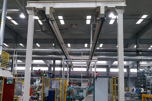 AREKE的解决方案:AREKE组合式悬挂起重机(铝制主梁), 智能型提升装置。