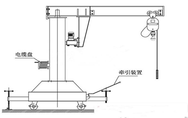 移动式悬臂吊更具灵活机动、适应性广等特点,是**自动生产线上所需的单独应急吊装设备,有了它能确保生产线畅通无阻。移动式悬臂吊具有结构新颖、伸屈自如、操作灵便、**节能的特点。操作时,按动电钮将载重物吊起,利用横梁的弯曲和悬转运动,在控制工作区域内避让物体,使工作区域较大化。用手轻轻推拉,便可达到作业区域的任一位置。